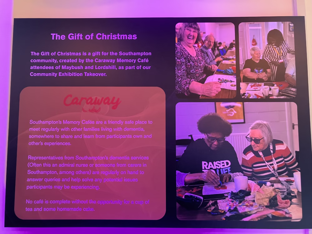 The Gift of Christmas is a gift for the Southampton community, created by the Caraway Memory Cafe attendees of Maybush and Lordshill as part of our Community Exhibition Takeover.